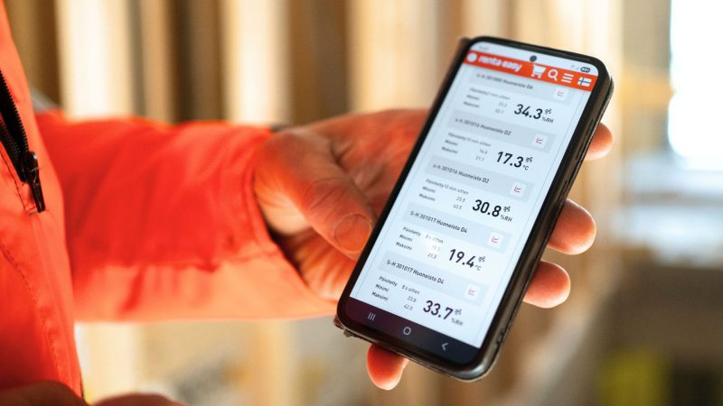 Tahko Lakeside –projektin työmaapällikkö ja vastaava työnjohtaja Juhani Leskinen TOION Oy:lta löysi ratkaisun Rentalta. Kiitos reaaliaikaisen, etäluettavan Renta iO –olosuhdemittauksen, kosteuden ja lämpötilan näkee tilakohtaisesti yhdellä silmäyksellä, ja data jää talteen.