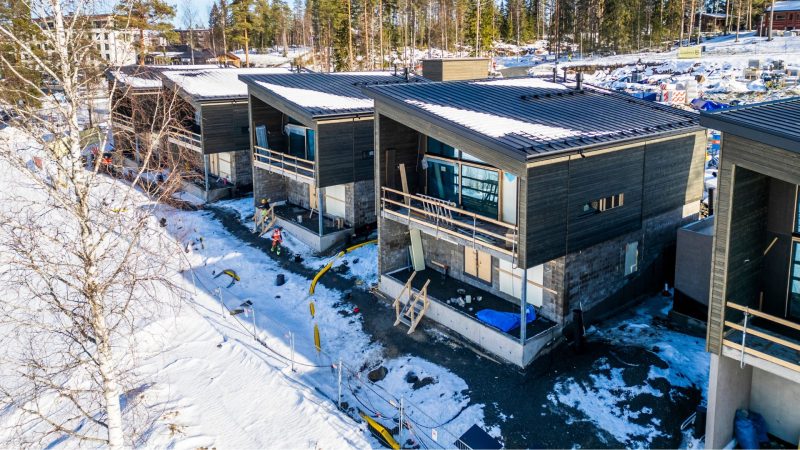 Lämpötilan ja kosteuden seuranta on kriittistä esimerkiksi kuivumisaikojen kannalta – ja vaikuttaa suoraan myös aikatauluun ja kustannuksiin. Tahko Lakesidessa oikeat olosuhteet varmistetaan reaaliaikaisella, etäluettavalla olosuhdeseurannalla sekä Renta Easy+ -palvelulla.