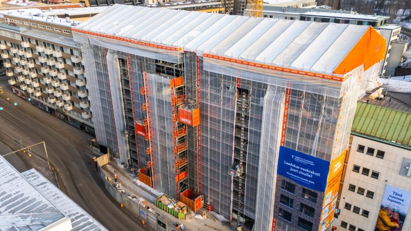 Renta toimittaa kohteeseen kokonaisvaltaisen rakennusaikaisen lämmityksen, telineet, sääsuojat ja hissit.