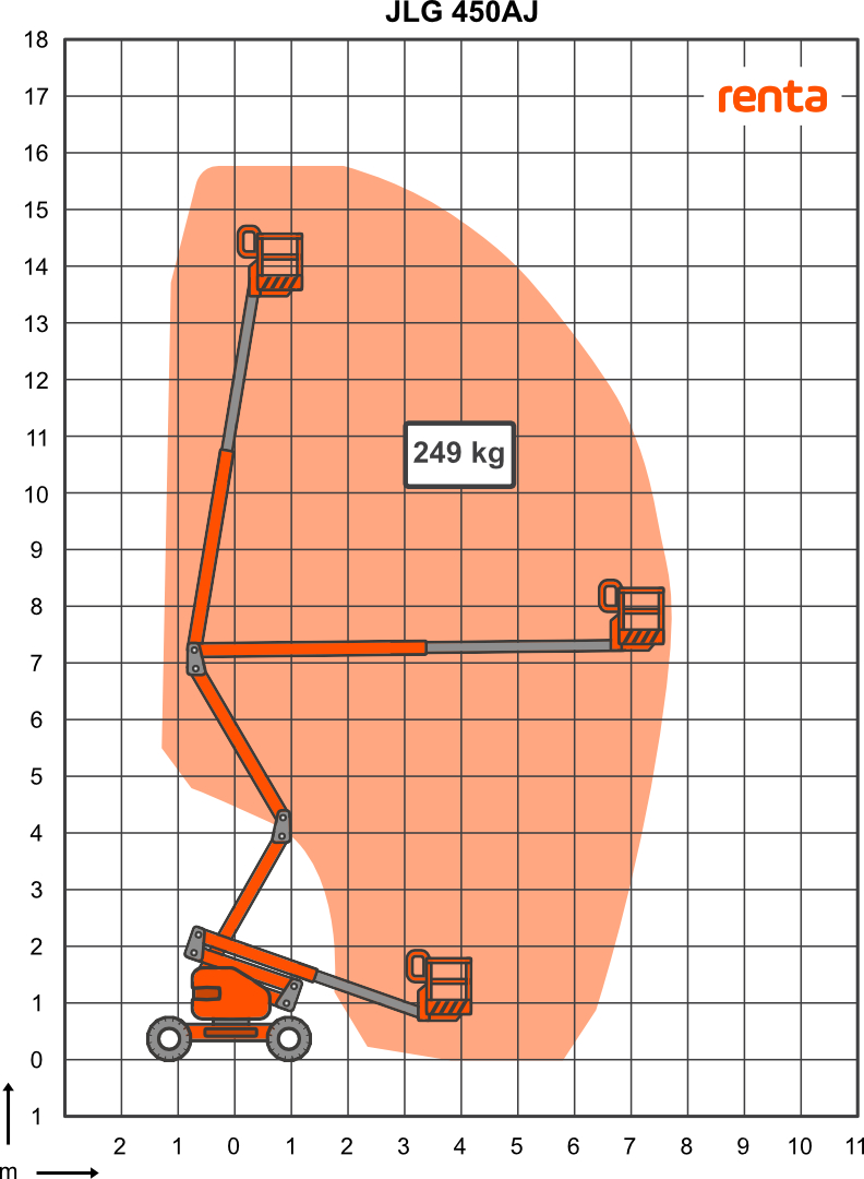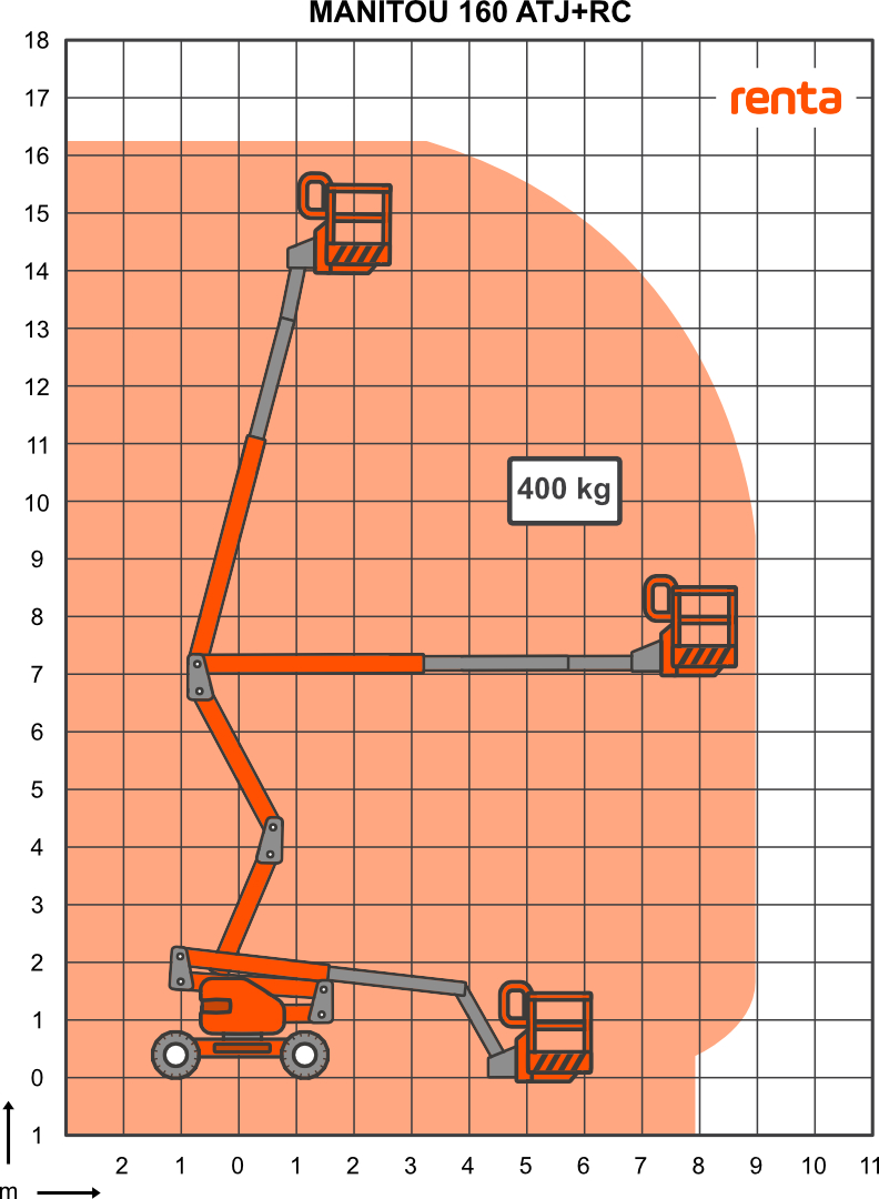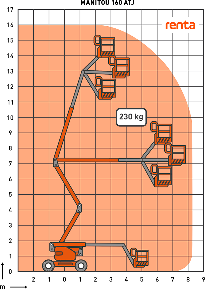 Ajettava nivelpuominostin, lavakorkeus 10-13 m, diesel